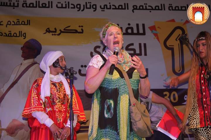 I start with As-salamu alaykum and the audience seem to like that. Then I apologise for speaking in English and I say what a fantastic festival it is. Then the certificate is put into my hands and I whisper to Titimba: Do you speak English? She replies: No! So, what's a girl to do? Totally instinctively I raise my fist into the air and shout GIRL POWER. It's the only way I can show how much I appreciate her performance. I hope I didn't offend anyone by that but it just seemed right at the time.